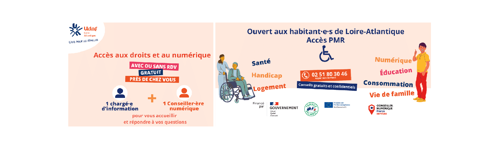 Au cours de ces permanences, deux professionnels de l’Udaf, un conseiller en numérique et un chargé d’information, seront à votre disposition pour vous offrir divers services :